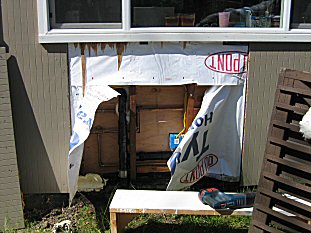 | The exterior of the wall with the AC unit, ready for new siding... |