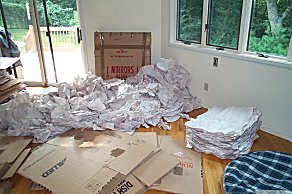 Since Carlisle recycles heavily, MJ convinced George to flatten out all of the packing paper and stack it out so it could be recycled... |