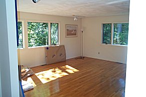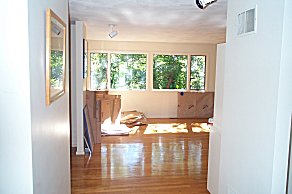 | The Living room is a nice size with lots of windows and an oak floor. We desperately need furniture for this room, but if we do an addition, the window on the far right wall will have to be moved, so we're not doing anything just yet... | ![]() |
