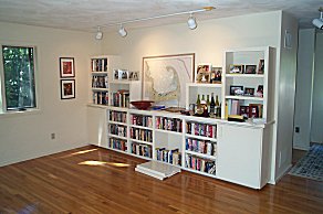 If you walk further into the living room and look right, we've got lots of built in bookshelves... |