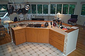 | ...and here's the kitchen island, cooktop and pot rack. Our family room wraps around this area; and the deck is off to the left. | ![]() |