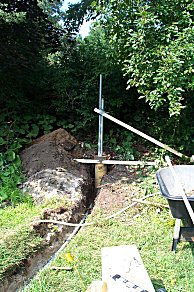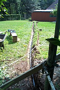 project- install a satellite dish so the direcTivo works. Placement was the issue- the dish needs a clear view of the South Western sky, so that limited us to the roof of the house or the front yard... since putting it on the roof seemed like putting a lightning rod on the roof, we opted for the front yard... |