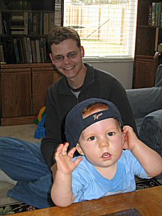 | When we got to Orlando, we immediate rented a car and headed for Wesley Chapel to see Becky. When we got there, Nick was still there- it was terrific to see him and everyone else. Here's Nick w/Connor... |
