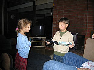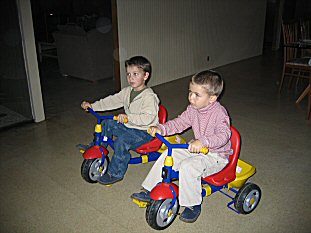 | Lovro and Yon racing in the gallery. |