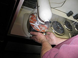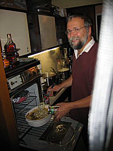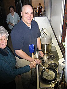 | Our neighbor Terry and JasonT prepare the gravy... |
