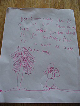 Unfortunately there wasn't any snow on the ground to speak of. It did snow a bit the night we arrived. MJ and George didn't get up quick enough the next day; and we got this note: |