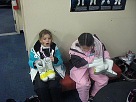First you need proper gear- here the girls get fitted for boots. Then off they went... |