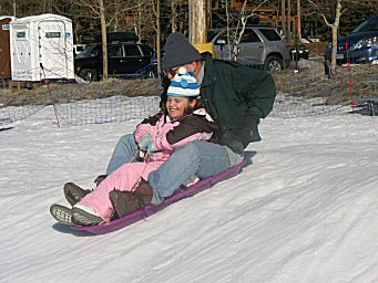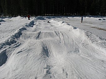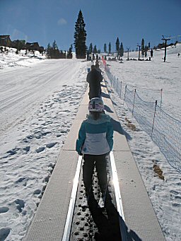 The last day of the weekend, we had to head home.. but not before some SnowPlay! HERE's one of the 2 sledding tracks @ tahoe-donner. This was basically just moguls built from ice, but the girls loved it. |