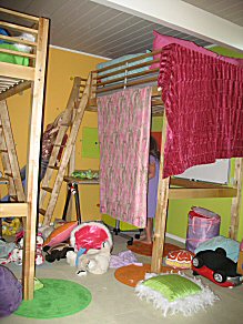 | And both girls have enough stuffed animals on their beds to start a zoo... |