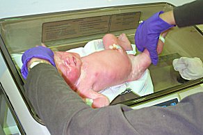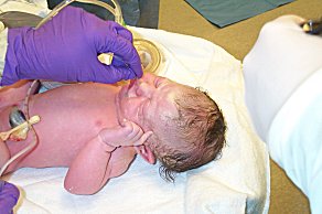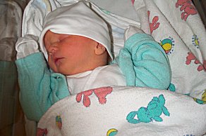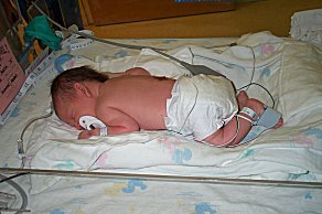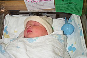 | Here's Jordan in the NICU. She ingested a lot of meconium during the birth and her initial respiration rate was high and her breathing was labored, so they're monitoring her vital stats in the NICU for the next 2 days. Everything looks fine, but they're worried about infection so they're just being real cautious. | ![]() |