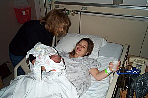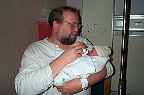 [wednesday, 07-feb-01] MJ awoke with serious contractions at 5:00 AM today. They were coming every 5 minutes and lasting about 1-1/2 minutes... Around 6:30, the doctor told us she's meet us at the hospital... |