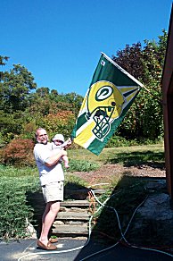 satellite and we can see all the games. Plus, now we have a real place to hang the flag- here's Jordan helping dad show our gang colors. |