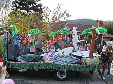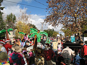 | The whole parade formed up on a side street in Los Gatos; then we marched all the way down University Ave to Main Street, crossed 17 and wound up at the high school. |