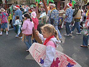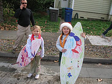 One of our activities is to march in the annual Los Gatos Christmas Parade. This year's theme was surfing, and we were there! The first thing we had to do was to decorate our surfboards... |