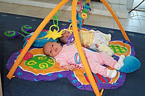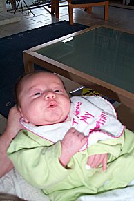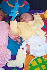 Jordan, working it. This is also a good shot of Jordan's pavlic sling- she was born with a dislocated hip and wore this brace 24x7 for the first 8 weeks of life... |