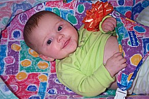 | Somehow this bow got on top of her head- we expect this will be terrific blackmail material in the teen years! | ![]() |