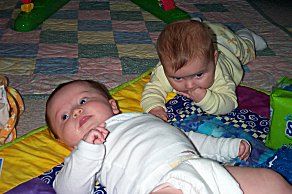 Two babies getting ready for bed. We have a complete nightly ritual that includes a walk in the stroller, foot rubs, storytime and a nightcap from mom... |