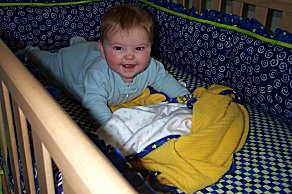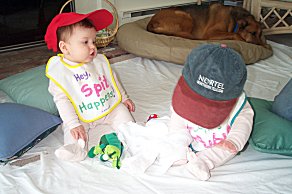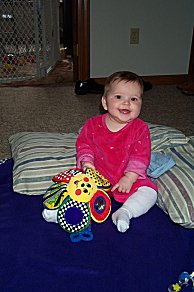 | A happy kid! Here's Taylor, hanging out on the floor at Carol's house. | ![]() |
