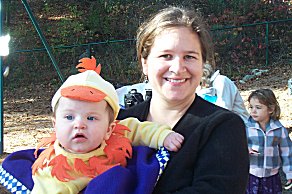 | Then, on Halloween weekend, MJ dragged us to the kids costume parade at the local school. The kids were somewhat overwhelmed at all the stuff going on. Here's MJ and Jordan. | ![]() |