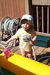 Jordan learns about cause and effect in the kiddie pool on our deck... | ![]() |