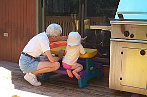 | Grammie Margaret explains cross-country skiing to Taylor- Taylor looks unconvinced. | ![]() |