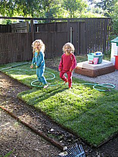 | The girls like the new play yard on the side of the house and can't wait to try it out. |