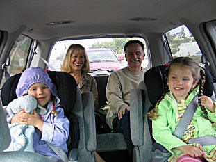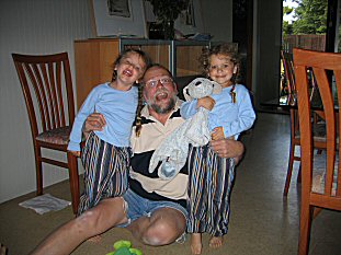 | And here's dad with his two girls- he somehow got them to wear their grown up pants and smile all at the same time. |