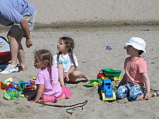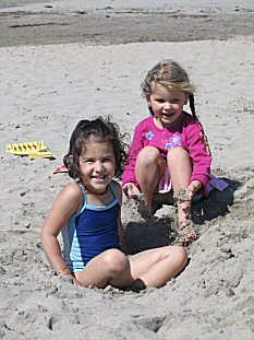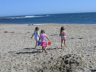 | The Pacific Ocean is chilly (50s); and the girls enjoy tempting fate- fortunately there usually aren't many waves here. |