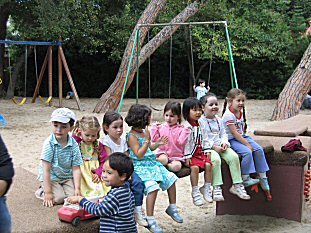 | The girls finished their first year at Montecito in June- here they are with a bunch of their classmates- from the left- Theo, Taylor, unknown, Minna, Ellie, unknown, Allie and Jordan. |