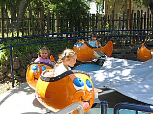 | We also had season passes to Bonfante Gardens and so we starting using them. HERE's the girls on one of their favorite rides- the caterpillar and the worm ride... |