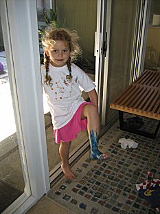 | One day, our friends Heidi and Gardner and Phoebe (their daughter) came by. Here's the girls sitting by the hot tub, staying dry (NOT!) |