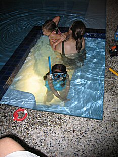 ...and we kept using the pool and spa. The 4 of us almost fit into the spa. Interesting thing about this picture is that Jordan has figured out how to use the mask and snorkel...at the ripe old age of 4! |