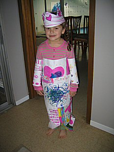 | One day, Taylor wanted a paper dress, so Ashley built it for her! |