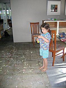 | (Taylor has some in her hair; and scooby did not escape unscathed...) |