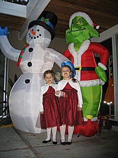 | Our entourage of inflateables keeps growing. HERE's the girls with Frosty and the Grinch. |