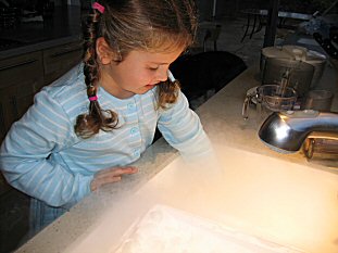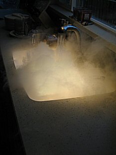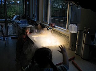 | The fog filled the small sink, and the girls had fun reaching in and seeing their hands disappear. |