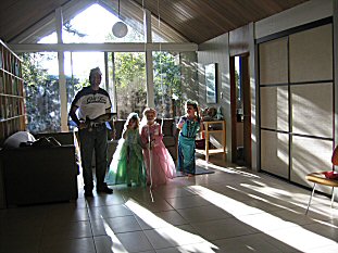 Our new next door neighbors came over for dinner. Scott made the mistake of agreeing to play with the girls. He wound up being cast as the one eyed pirate ;-) |