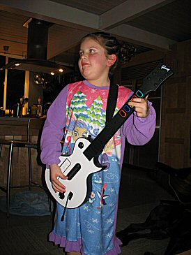 Jordan's still rocking the WII. She has mastered using just 2 fingers on the frets and runs her hand up and down the neck..wow! |