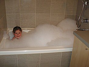 | Taylor demonstrates that, yes, you can use too much bubble bath ;-) |