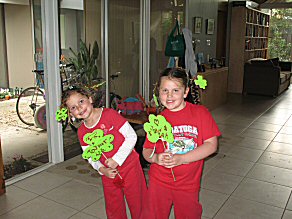 | Prepping for St. Patricks' day. These shamrock headbands were built at clubhouse. |