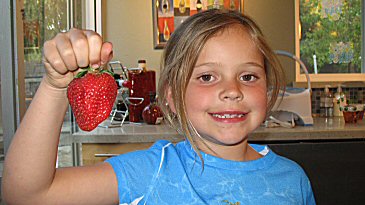In May, the "Strawberry Man" returns to Saratoga, selling hours old strawberries from his driveway. HERE Taylor shows off a typically sized berry! |