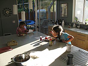 | Demonstrating an old Hill-family tradition- spoon-nosing! |