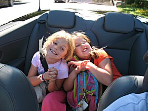 | The girls' first ride in Mom's next convertible. Taylor declared it was the "Awesomest" thing she had ever done! |