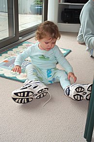 | Both kids love wearing big shoes- we think they're practicing to be circus clowns..! | ![]() |