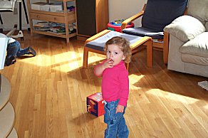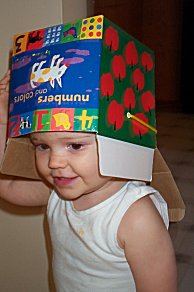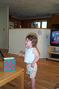Jordan is a great picker-upper; she's crowing about how good a job she did putting all the blocks away. |