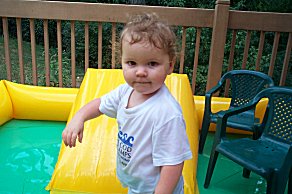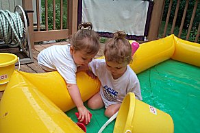 This summer, MJ went out and got the kiddie wading pool that we put on the porch... and the kiddes just love it! |