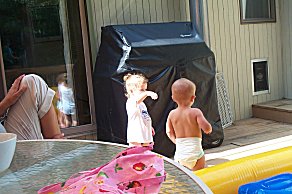 | On hot dogs (read, every day), they get their swim trunks and shirts on and head outside... | ![]() |