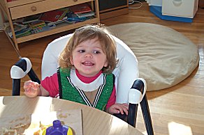 | The kids like having "family dinner" with us, so we're trying to do that more. Here's Taylor after a satisfying meal of gruel, curds and lard ;-) | ![]() |