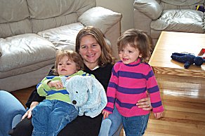 We had a breather between Christmas and New Years- all our guests left and George had the week off. Here's a great shot of MJ and kids vegging in front of the boob tube (probably watching "Blues Clues") |