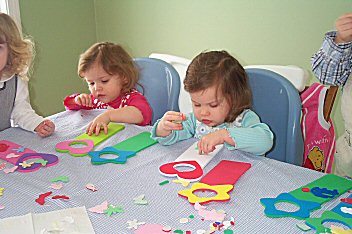 Taylor and Jordan doing arts and crafts at playgroup. |